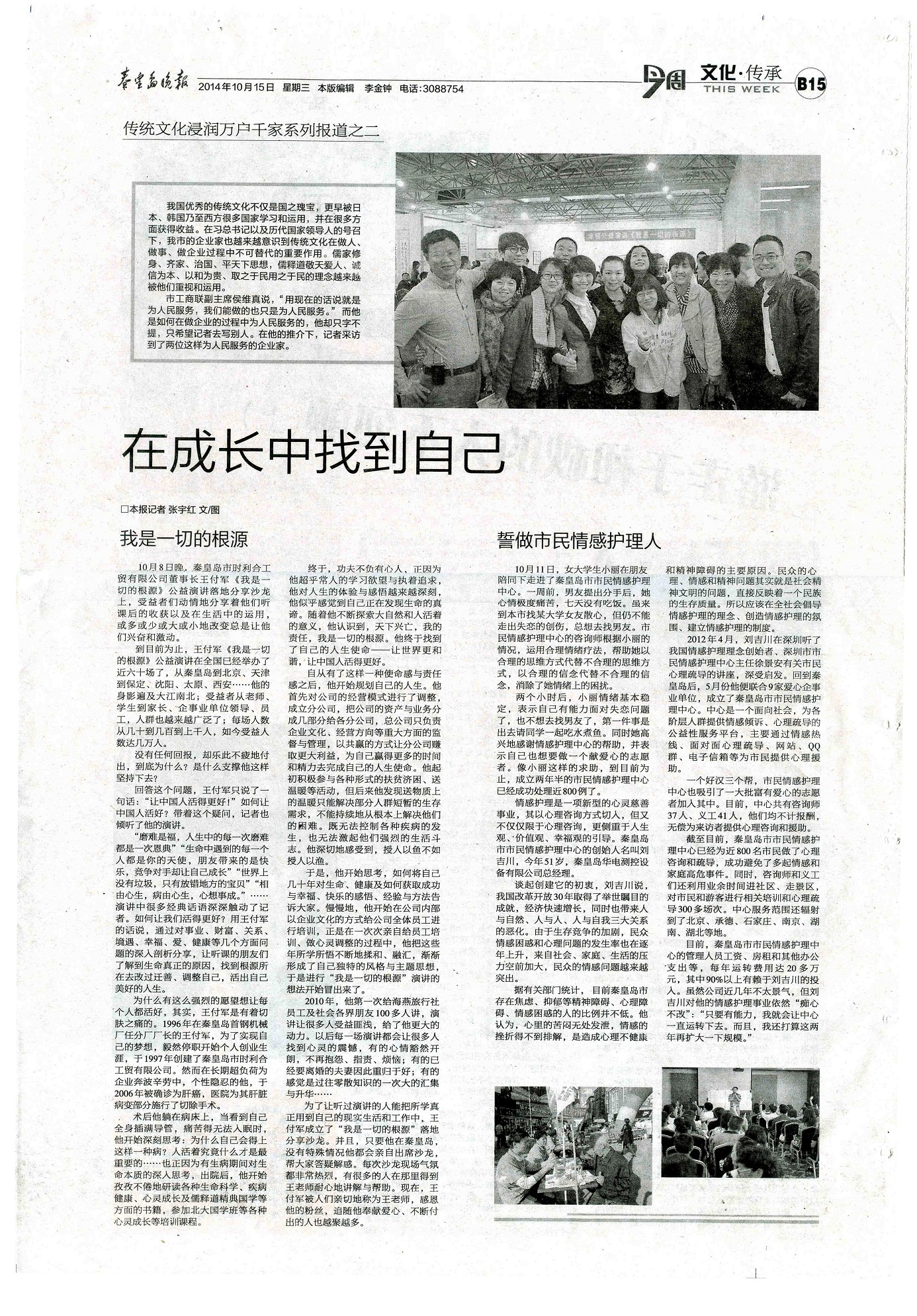 “磨難是福,人生中的每一次磨難都是一次恩典”“生命中遇到的每一個人都是你的天使,朋友帶來的是快樂,競爭對手卻讓自己成長”“世界上沒有垃圾,只有放錯地方的寶貝”“相由心生,病由心生,心想事成”……演講中很多經(jīng)典話語深深觸動了記者。如何讓我們活得更好?用王付軍的話說,通過對事業(yè)、財富、關(guān)系、境遇、幸福、愛、健康等幾個方面問題的深入剖析分享,讓聽課的朋友們了解到生命真正的原因,找到根源所在去改過遷善、調(diào)整自己,活出自己美好的人生。